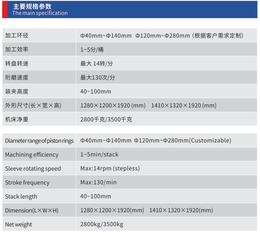 本机适用于各种活塞环外圆、锥面环接触亮点以及桶面环的珩磨。采用液压传动以及先进的电气控制技术,运行平稳可靠,整机发热量低。